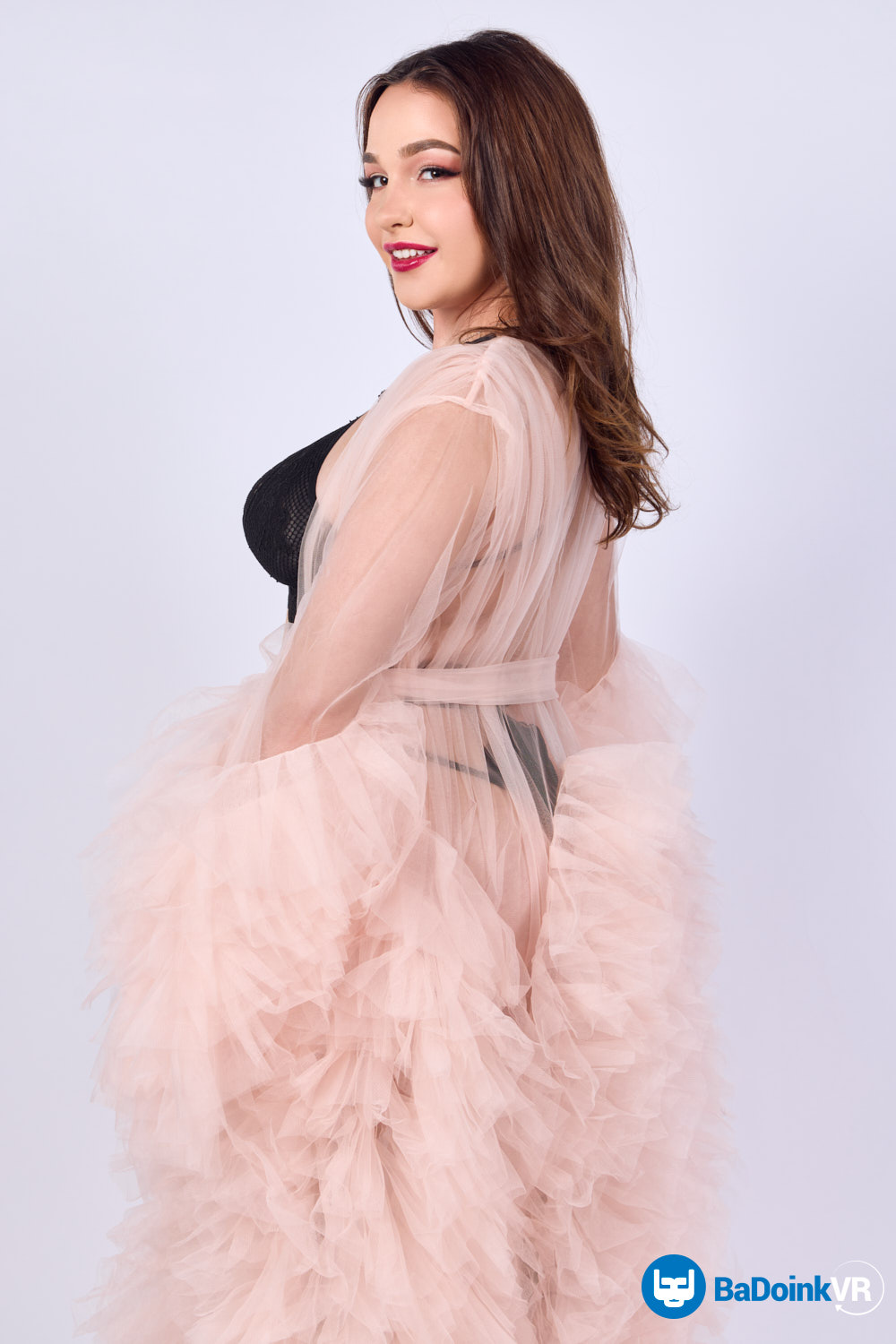 The world you know melts away as Rissa May appears, right there in your room. She’s not on a screen; she’s on your bed, a tantalizing ghost in the machine rendered in stunning passthrough clarity. Her sheer robe does little to hide the lingerie struggling to contain her most magnificent assets. Those aren’t just breasts; they’re a VR marvel, heavy, natural, and spilling over, right here in your actual space.